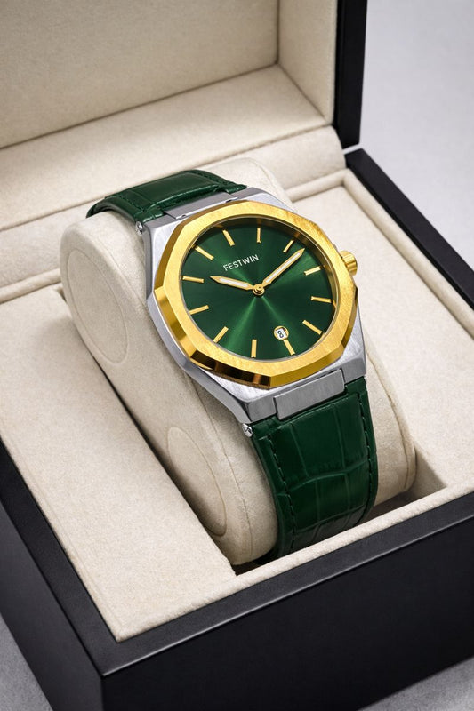 ⭐ Key Features Gold-tone stainless steel case & bracelet Eye-catching green dial with luminous markers...